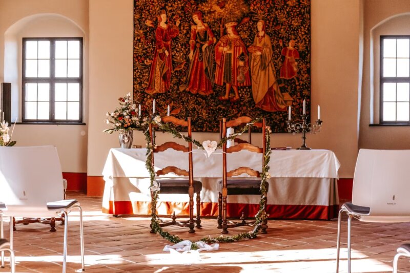 Trauung in der Burgkapelle: Falls die Burg eine Kapelle hat, ist das eine wunderschöne Option für eine intime, spirituelle Zeremonie.