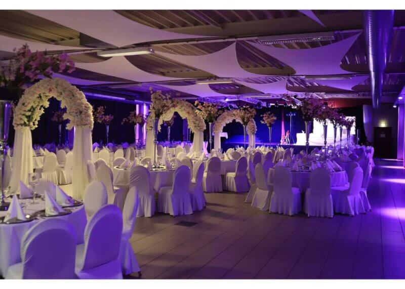 Licht kann die Atmosphäre eines Raumes komplett verändern. Nutzt die technische Ausstattung des Konferenzzentrums, um den Raum in euren Hochzeitsfarben erstrahlen zu lassen.
