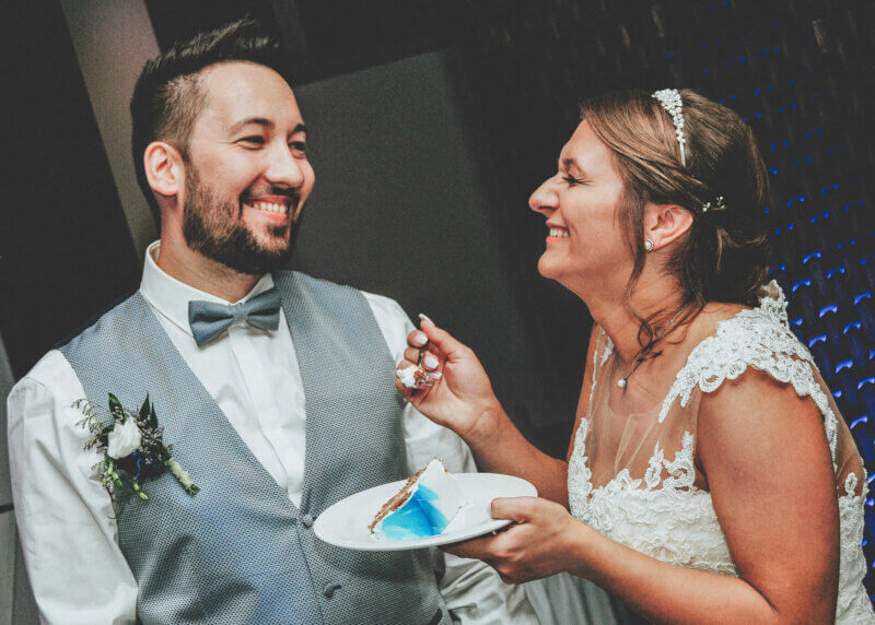 Ihr werdet eure Torte selbst anschneiden, aber keine Sorge, niemand erwartet, dass ihr jeden Gast mit einer Portion versorgt. Wenn ihr mit eurem Catering-Team sprecht, sagt ihnen genau, wie die Tortenstücke geschnitten werden sollen.